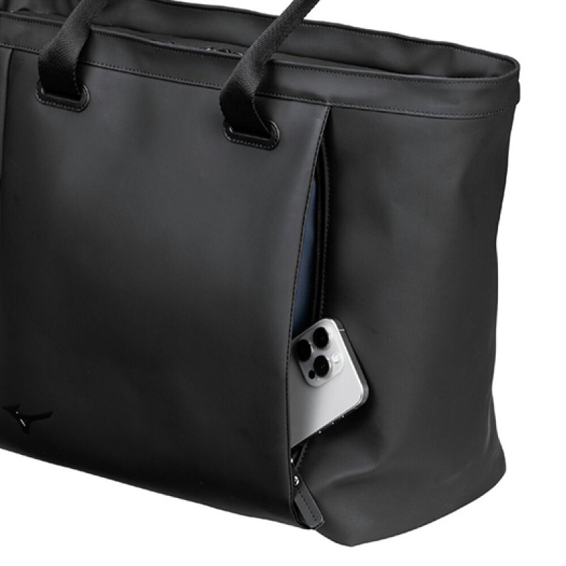 Mizuno衣物袋(黑)#252209 這款單層衣物袋, 主層以雙拉鍊開合,包包空間容量大,可存放多樣個人所需物品,背面下擺處可置鞋空間,可放置一雙鞋,附有背帶可調整,手提或肩背都方便提拿,簡約時尚..