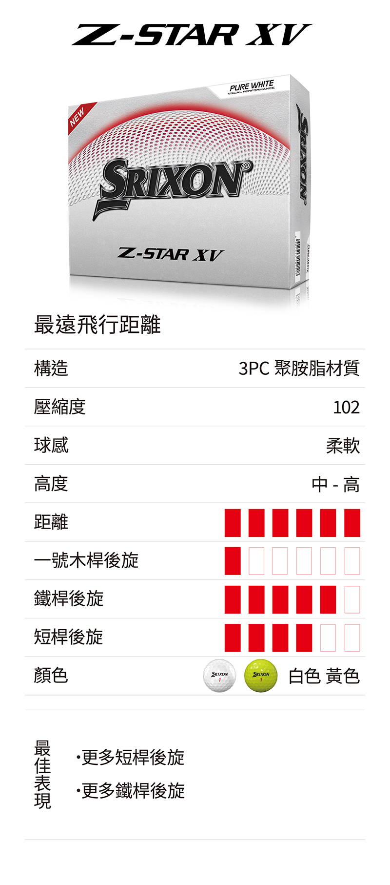 Srixon Z-STAR XV/白球,一盒原價2,200元,陽光商場優惠價1,300元。