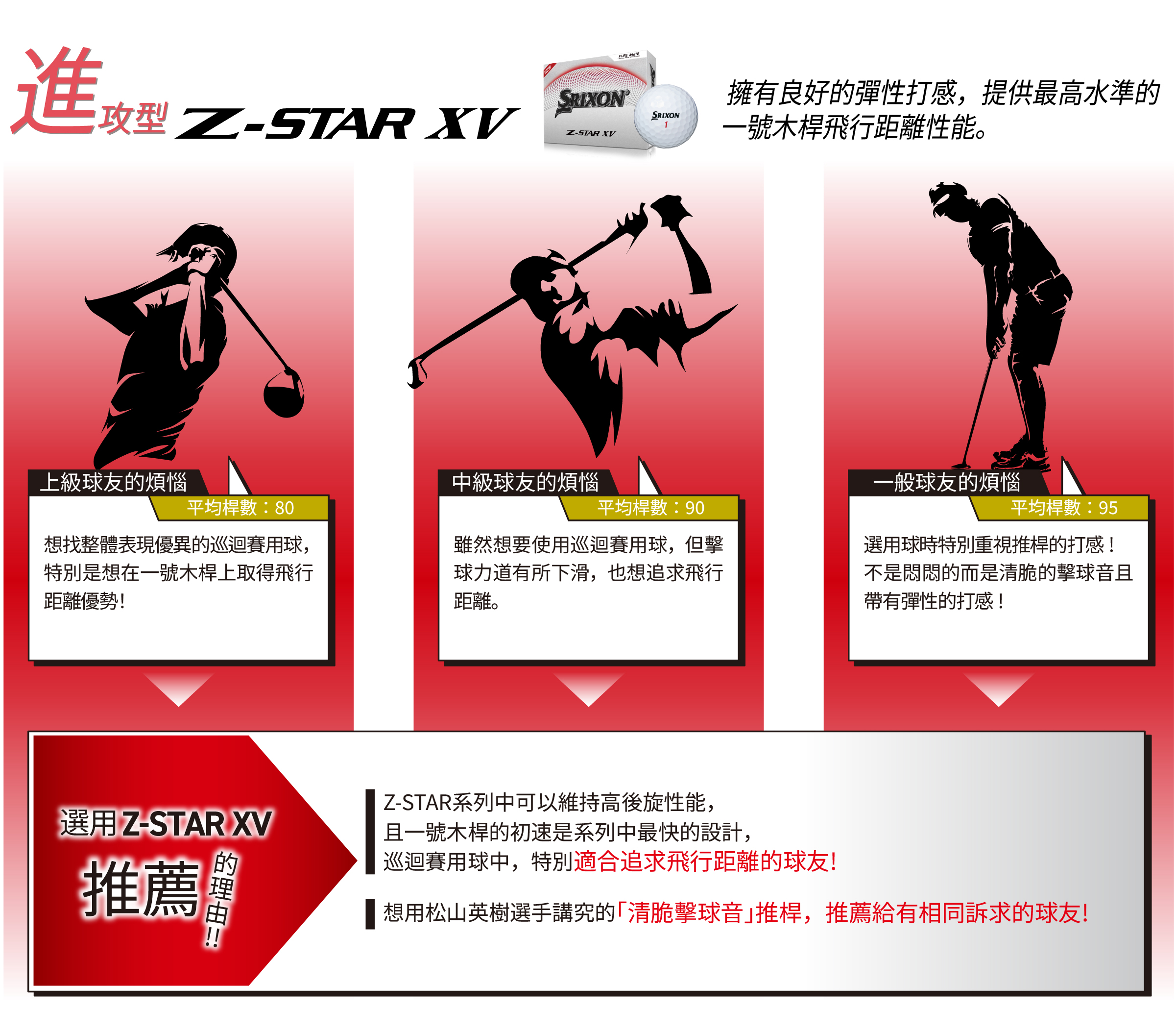 DUNLOP充分發揮開發能⼒,針對球友的進攻⽅式及擊球容易遇到的問題, 提供3款⾼爾夫球給你選擇。