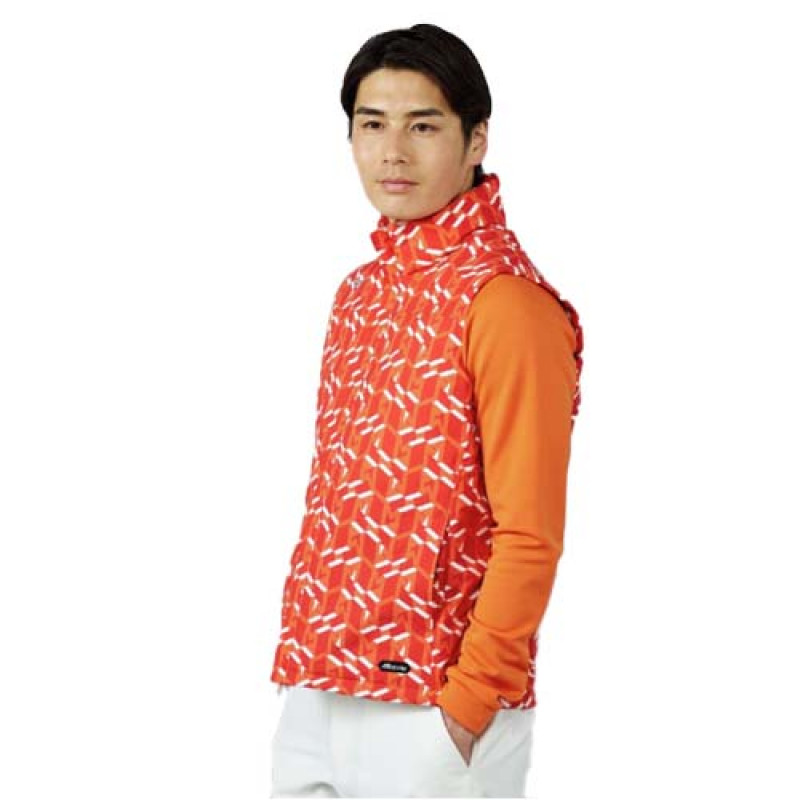 Mizuno防風羽絨背心(白/桔紅圖)#50853