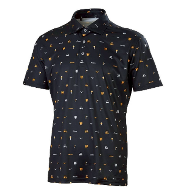 Mizuno男Polo衫(黑/桔Tee.球車..印花圖)#00296