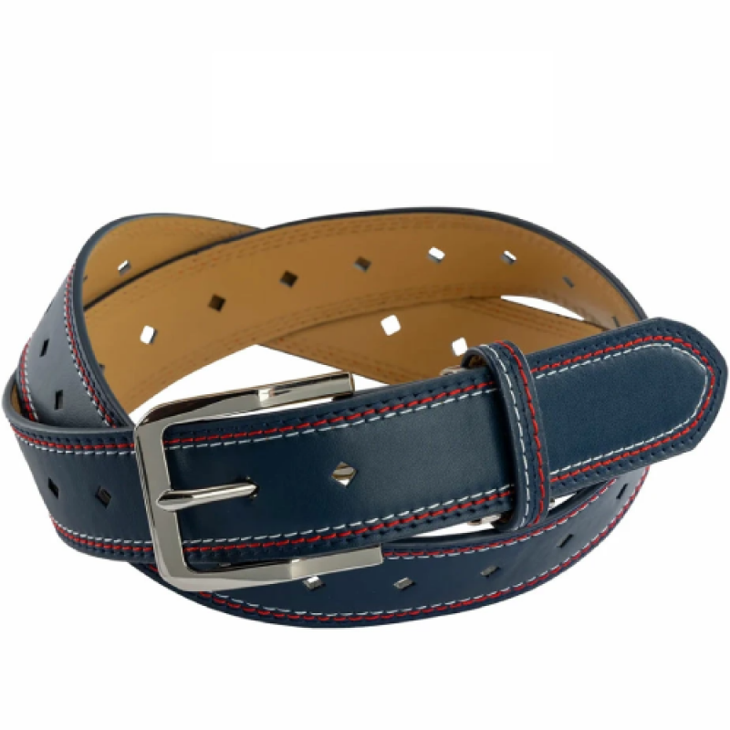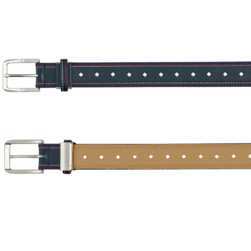 KASCO防水皮帶,採用彩色縫線和菱形針孔設計,長度足以滿足腰圍 115 公分的需求,簡約時尚,無論是日常搭配或是球場上穿搭配戴都很合適。